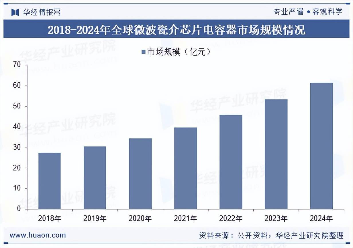 随着全球通讯行业的快速发展,行业需求持续增长,同时,军用雷达、电子对抗设备等新型武器装备以及光通信器件等对微波瓷介芯片电容器的需求也呈现大幅增长态势。据统计,微波瓷介芯片电容器2024年全球市场规模约为61.51亿元,同比增长15.06%。