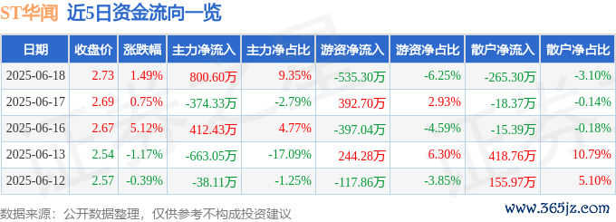 本站消息,截至2025年6月18日收盘,ST华闻(000793)报收于2.73元,上涨1.49%,换手率1.6%盛金缘证券,成交量31.39万手,成交额8563.01万元。